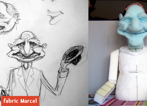 "Menus Larcins" Spectacle de rue international de la compagnie Délit de Façade : Manipulation "théâtre noir" avec comme castelet des fenêtres de façades urbaines. Sculptées en mousse par Annaïc Penon d'après les dessins et prototypes miniatures réalisés par le directeur artistique de la compagnie : Romain Duverne. Les marionnettes présentées sont issues d'une des formes du spectacle "Menus Larcins" intitulée "Dimanche" mise en scène par Sandrine Furrer.